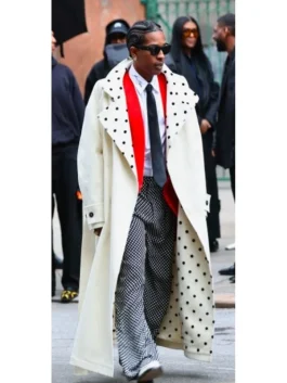 This A$AP Rocky coat is more than just an outfit; it is a lifestyle statement. The clean white tone reflects confidence, class, and versatility, making it perfect for both casual and formal occasions. Whether you are heading to a winter event in New York or simply elevating your street style, this trench coat delivers a timeless appearance.