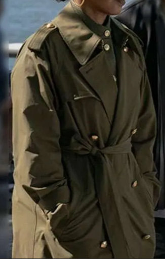 Step into the sharp and composed look of Ayanna Bell from Law and Order: Organized Crime with this inspired green cotton coat. Functional, smart, and understated, this coat is perfect for those who appreciate stylish outerwear with subtle authority.